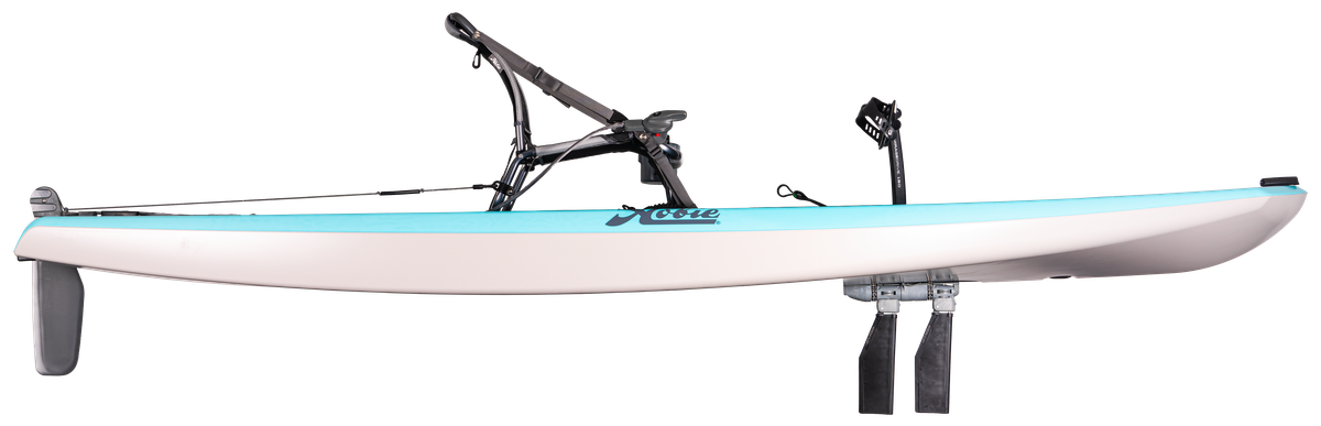 Relish the power of pedal propulsion, in both forward and reverse. The effortless speed of the MirageDrive 180 with Kick-Up Fins combined with the streamlined, sleek hull of the Lynx make for a truly epic ride. Kick it up a notch, as you swiftly skim across the water's surface, carving turns and leaving the world behind. The Lynx's flat-bottom design provides confidence-inducing stability and ultimate maneuverability. Less is more when it comes down to construction. Lightweight materials meet optimal performance with ACE-TEC Technology that is perfect for a weekend of exploring. Weighing in at only 47 lbs. and equipped with rear loading skid pads, easily throw it on the roof of your car for uncomplicated transport. The best seat in the house, designed for comfort with breathable, mono-mesh, elevated to keep you dry all day. The wide bow creates a smoother ride and ample storage for your gear. Meticulously crafted with molded in tracks and an accessory mount, make it yours with our Sail Kit, Bimini Sunshade and other upgrades.