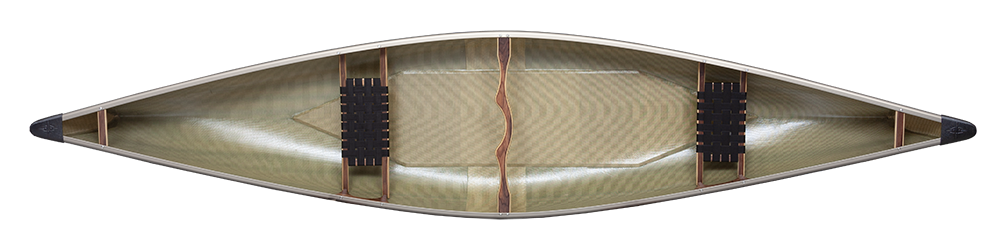 All Aramid. Our proprietary yellow and black makes a stunning moiré pattern. Full wet bag minimizes resin and creates the lightest weight canoe available. Foam core, ribs and internal reinforcements make a stiff, efficient hull. The choice of flat-water paddlers everywhere. Exterior resin coated for maximum weight savings.